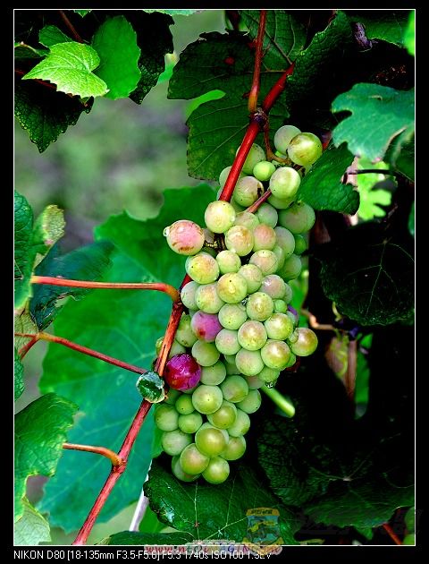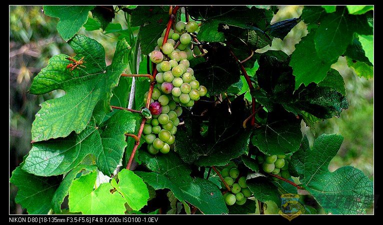 枝头果实累累,忙坏了小蜜蜂,主人尚未品尝,它已捷足先登,紫得诱人,绿得可人,,