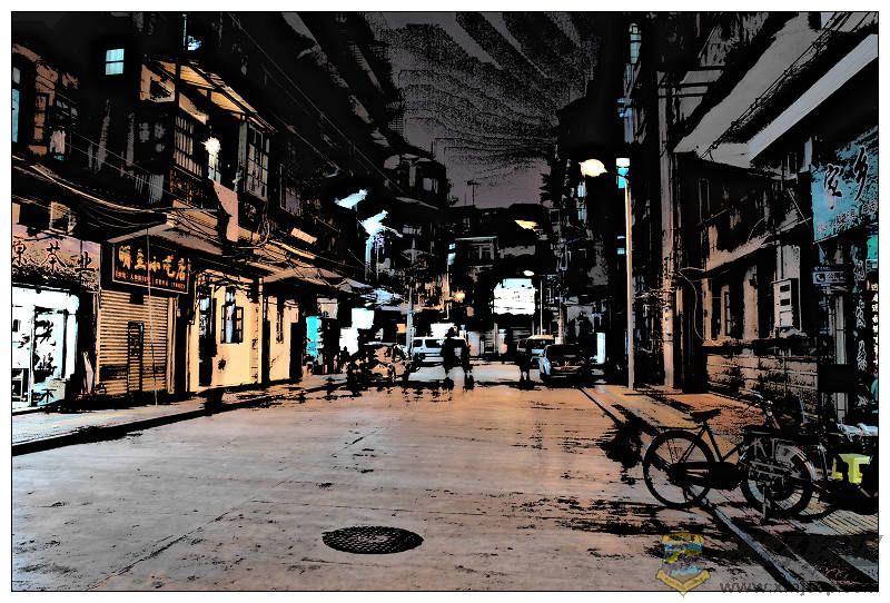 上周五晚上,有幸随熊老大出外景,学习拍老街。。。平日习以为常的街巷、楼房在今晚显得特别的神秘。特别是在夜深人静时,每条街道,每座亭台楼阁,每扇窗子,每盏路灯仿佛都在述说着历史。。。因为没有带三脚架,所以没能像老大他们使用慢门,只能提高ISO快门拍摄,所以拍不出梦幻的效果,又看了熊大的好PP,我更不敢见人了。。。再次废物利用,做成动漫效果烂鱼充数了。。。