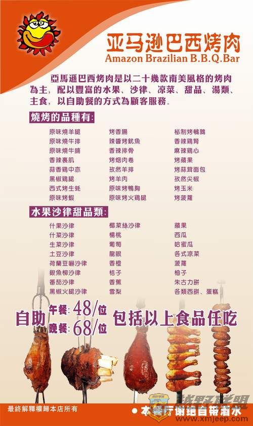 此老板在全球都连锁开设巴西烧烤屋。在中国也很多家分店。xmjeep.com2 x* K" y& j$ Q" z, b2 g U! R* {( t