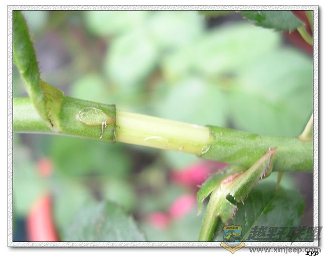 这是切后的图,我没有切那么深了,我的是嫩枝条,所以我只是把皮拨了一层,一样好效果的,已经成活了好几棵了,你也可以试一下的!!!