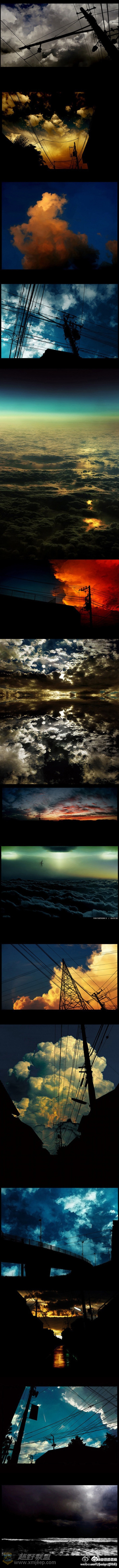 【令人惊叹的手绘作品】这些都是手画的,各种云和电线杆之类的风景。