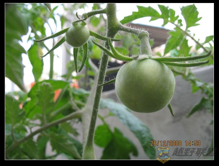 先看看番茄吧!很高了,1米多。桃园应该是小型番茄。每次都开一串花,结成整串的果实。目前东一串西一串挂满枝头。陈年葡萄酒,看个头就比较大。因此至今只看见这么两个果子。当然,陆续开花受粉中,已经看见老三老四了,不到5毫米。。。幻想着成熟那天,多美味啊!