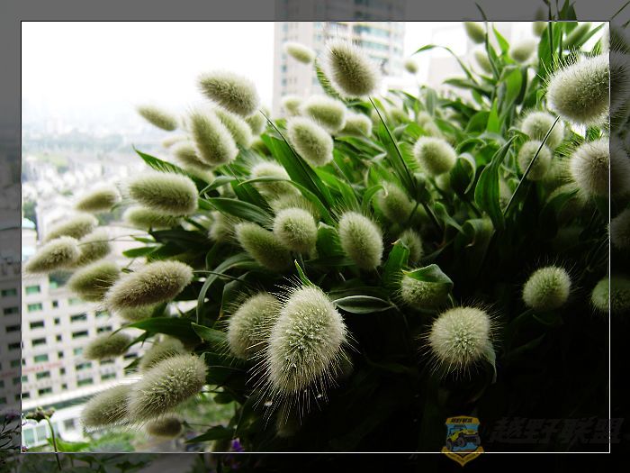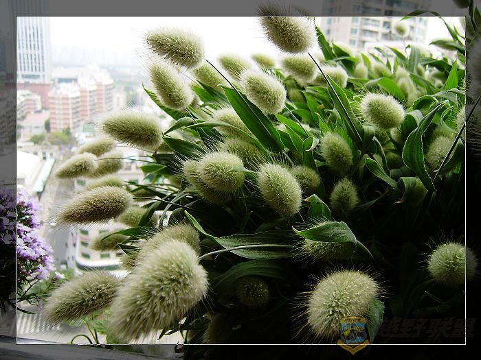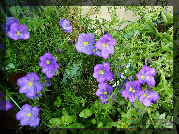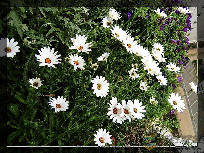 窗外的蓝白菊滋润着