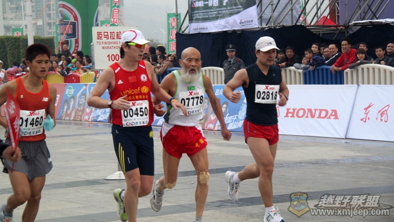 4个半小时到达者,86岁的老爷爷和小伙子一起冲刺终点