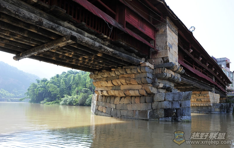 石头磊的桥墩,木条支的桥梁