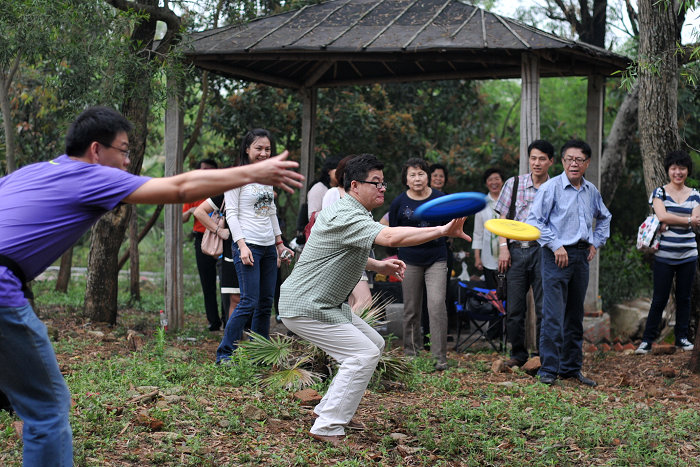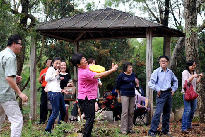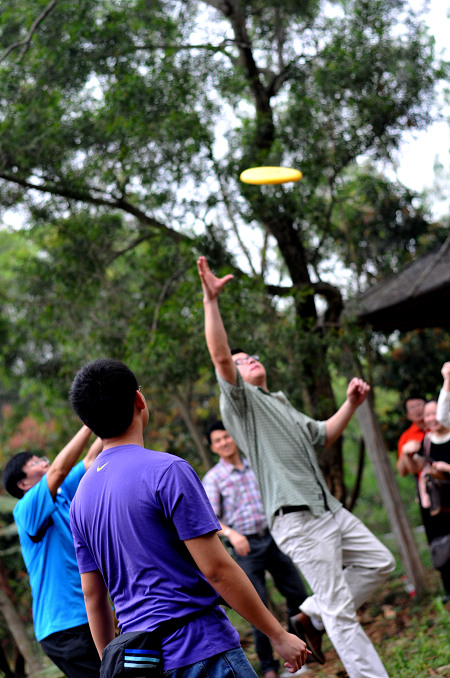 吃喝之余,一场飞碟运动会也悄然展开了,男女老少的热情参与情景是俺始料未及的, 感动啊。。。或许,因为没有风景,才让我们有机会制造更多“风景”,让大家有更多的互动。哈,忘却风景,你会发现每个人都是一道快乐的风景。。。