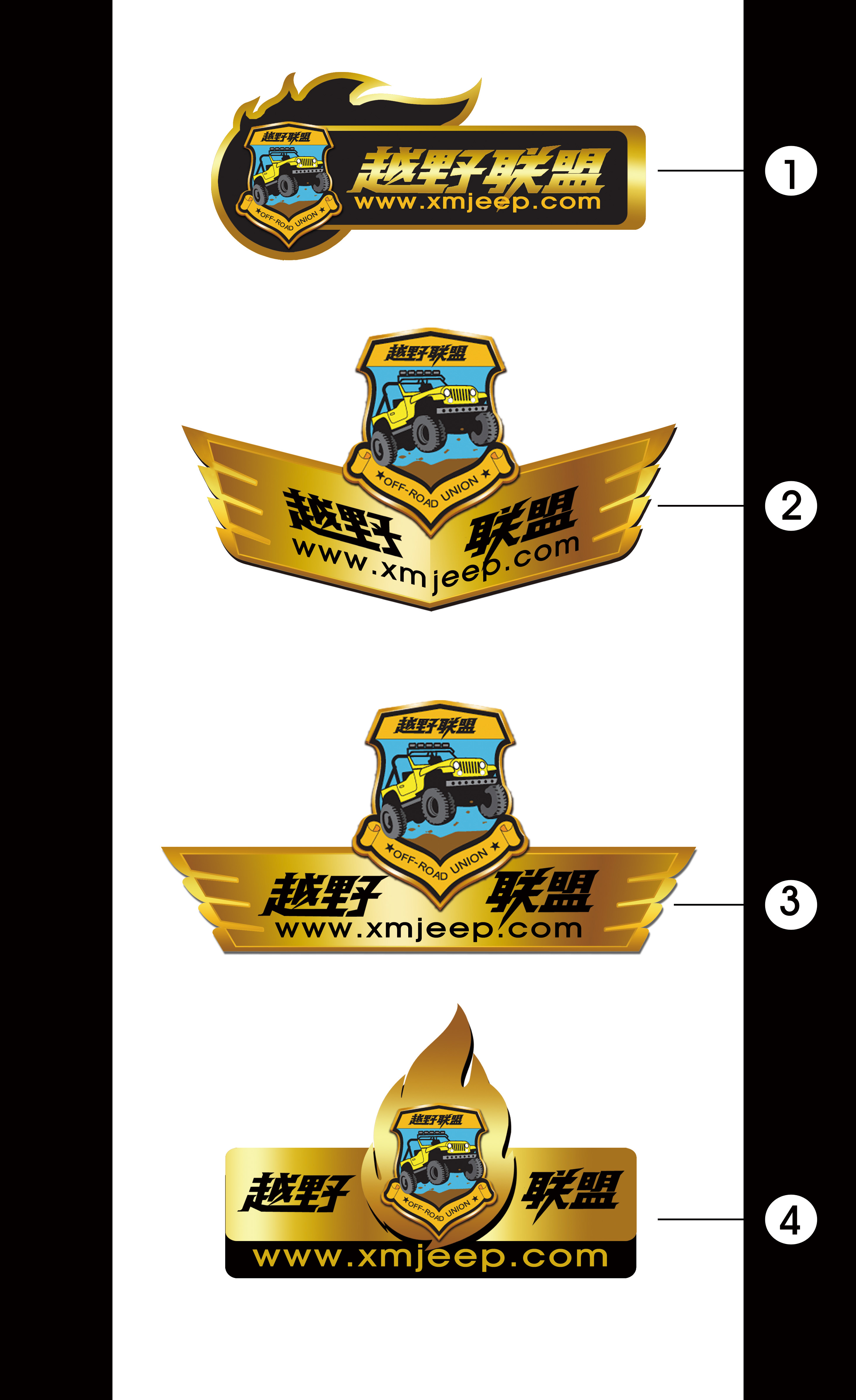 原帖由 野桑 于 2011-6-26 02:32 发表 : s+ D" W" a& F厦门越野联盟我也觉得1号的规格较适合(个人认为盾牌大点或字体小点会更好看),2、3、4属对称形的,较难找黏贴位置。