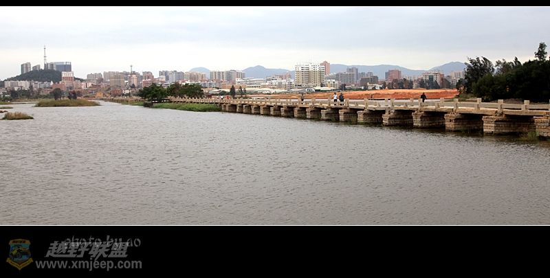 ! c8 o' ^: {3 E7 ]$ [* O8 i9 f厦门越野联盟这新桥与我们的心理距离实在是遥远,便驻车在公路两边到处打探,这一带打工仔超多,问了不少人均答不知,正准备放弃之际,恰一本地村民热情指路,我们从公路旁抄一条土路来到工地,没想到仅百米的距离,见一长桥横卧水波,左右均不见头尾,原来这工地正是万安桥中部湖心亭修缮的地方,真是纵车寻它千百度,得来全不费功夫。