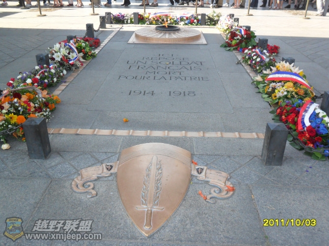 凯旋门前的纪念牌1920年11月,在凯旋门的下方建造了一座无名烈士墓。墓是平的,里面埋葬的是在第一次世界大 ...