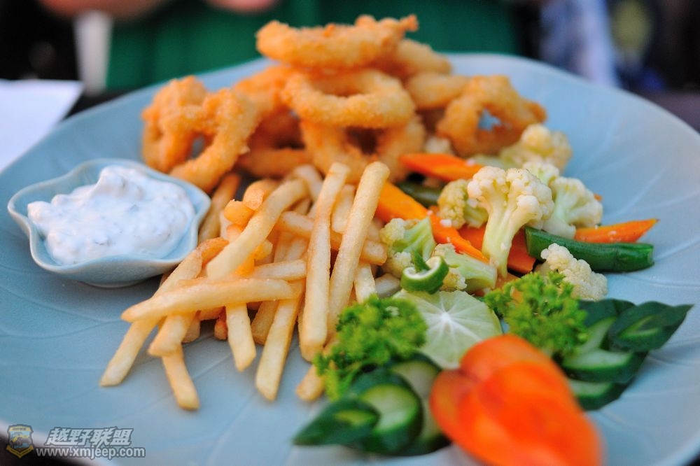 鱿鱼圈配薯条