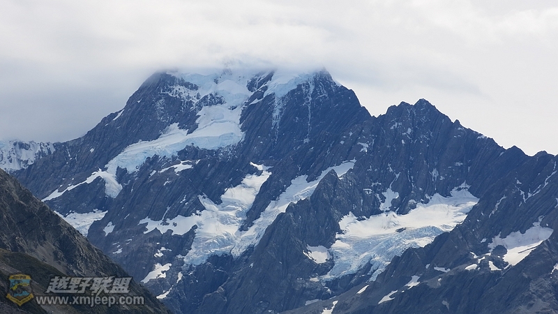 对岸的冰切面与远远的库克山