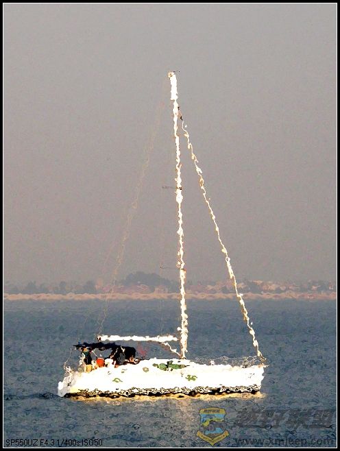 阳光的帆船在海里好象触电了;P
