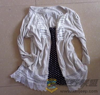 9 ~0 @0 Y* s% V- ], F/ L首先,拆掉衣服的领袖,保留衣服肩缝,沿衣服两侧将前、后片剪开,
