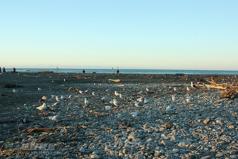 7 c; Z8 q7 b5 C2013.02.08,晚8:30,吃完丰盛晚餐后,队长叫大家赶紧开车,去海边看日落。HOKITIKA是整个新西兰观看日落的最佳地点。尤其是它的一个海湾,正好是呈三角形朝西的,那里能看见最美的落日。. \8 p2 o. d" e6 w: L8 L& J+ A& b