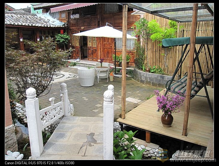 & Z* q* O. a/ @/ ?我补几张哈。。。。束河的客栈星罗密布,每一家都很下心思设计院子,花草园艺大多融入的很协调,正合俺们的心意,所以一家家的客栈看下来,感觉意犹未尽的。。。