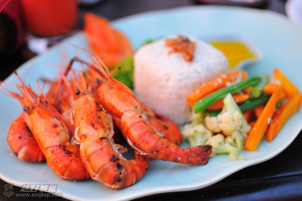 3 B+ v+ l/ c( U. R Z$ U/ L厦门越野联盟 傍晚,我们在刚发现的一家莲花餐厅吃晚饭,这是一家巴厘岛上的连锁餐厅,有着不错的口碑。晚餐时间,餐厅里却没有其他客人,我们挑了餐厅临海的无边泳池旁的一个位置。在正餐没上来的时候,日落了。漫天绚烂红霞装点起我们头顶的天球,也染红了海面和泳池。听着海浪的涛声和海风吹拂椰林的沙沙声,吃着烤虾大餐,看着劳模童鞋泛着红晕的脸,现在,我也是幸福的。