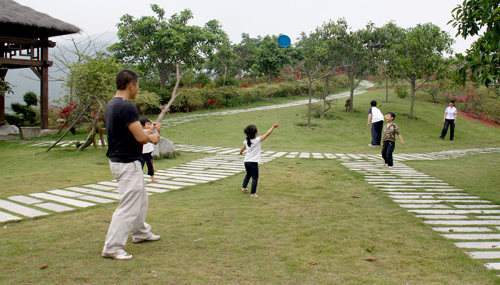 以下是行程活动记录:10:30从翔安隧道出口出发,10:45进入大嶝岛的“食家美食城”订餐(听说小木屋也不错),因吃饭时间尚早,我们顺便逛了大嶝对台小商品中心。12:00返回“食家”吃饭。。。酒店环境很好,可点餐也可选套餐,最高一桌700元有鲍鱼、螃蟹,我们六家大小十六人一大桌,吃得很撑。这里海鲜都是活的,感觉实在又新鲜。。。因为豆腐好吃,又多打包了六份带回家,哈。。。14:00吃完出发,走翔安大道穿过324国道、经过新圩镇进入大帽山,路况很好,全程柏油、水泥双车道,波平弯缓,好于东坪山。15:00到达大帽山三角梅公园。。。有老伯来收停车费5元,我们在靠水库的长廊亭安营扎寨。。。这里的空气更清新,四周绿草如茵,远处群山叠峦,盛开的三角梅满山遍野。。。大家都惊叹有如世外桃源。。。我们先搭建两顶帐篷,在廊亭内分享水果、泡茶、聊天。。。虽然是午后,但是阴天潮湿的气候少了太阳紫外线的侵害,让男女老幼可以尽兴在草地上嬉戏、玩飞盘、流汗快乐着(相对大晴天,我更喜欢雨天或阴天出游,一是免暴晒,二是有情调,哈)。。。17:30零星雨点时,我们就开始下山了,18:30雨中到达同安大地泡温泉,雨夜的露天温泉有着不一样的感受,天空还不时有闪电和雷鸣,大人小孩雨中作乐,泡走了疲惫,放松了身心。。。20:15三三两两出浴后,再喝上一杯阳光牌现煮咖啡。。。车队在雨中返航,回家。。。