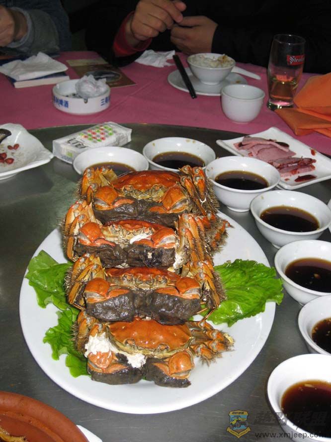 来苏州前,就已无数次念叨大闸蟹了。今天终于在观前街的某大酒楼得以大快朵颐。每只大闸蟹都半斤多重,一只就得一百零五元,好贵啊!但真的好吃啊,值得!