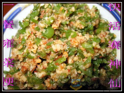 ; g! y) ?: E0 O" L" u* X1.将菜梗切细,放入盐巴腌渍约2分钟,后挤兑干水份~~(一定要把水份挤兑干哦)