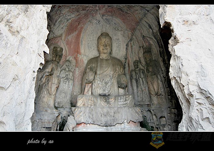 3 n3 V( c. z; Q1 d厦门越野联盟 奉先寺是整个龙门的精华所在,奉先寺原名大卢舍那像龛,佛高17.14米,头高4米,两耳为1.9米高,丰硕目秀,仪表堂堂,迦叶持重,阿难温顺,二菩萨盛装艳服,天王雄伟,力士勇猛。是中国唐代佛教雕刻艺术的杰作。奉先寺为唐高宗所创,皇后武则天曾于高宗咸亨三年(672年)捐助脂粉钱两万贯,三年后完工,但据有关资料和专家推测,佛像约始建于武则天被立为皇后的永微六年,就是公元655年之后。完工于上元二年(公元 675年),实际耗时约21年左右。