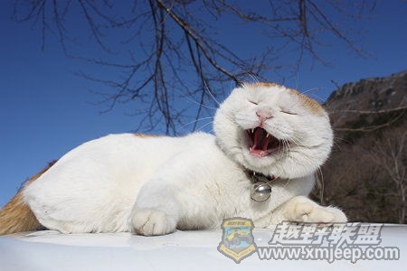 & O! W# c, d3 A据说此猫是日本一农户所养.网上名气大.有它的博客,还有出摄影集.因为喜欢戴花.被称为"杨二车娜猫"