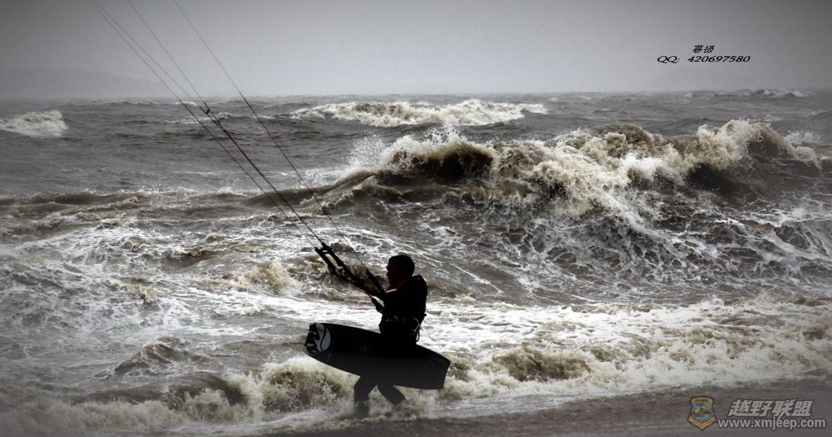 ,为了拍下特别的风筝冲浪,我还在手忙脚乱的调焦时一个大浪打来已经被拖到海里,当时的感觉就是兴奋和刺激完全不顾了,唯一注意的就是相机的安全,这次的拍摄感觉以前从来没有这样经验,虽然有考虑了相机的防水保护但没有想到对焦时那么的困难,大风吹得也拿不稳相机,在那样的情况下头脑发懵没有去想如何的构图取景