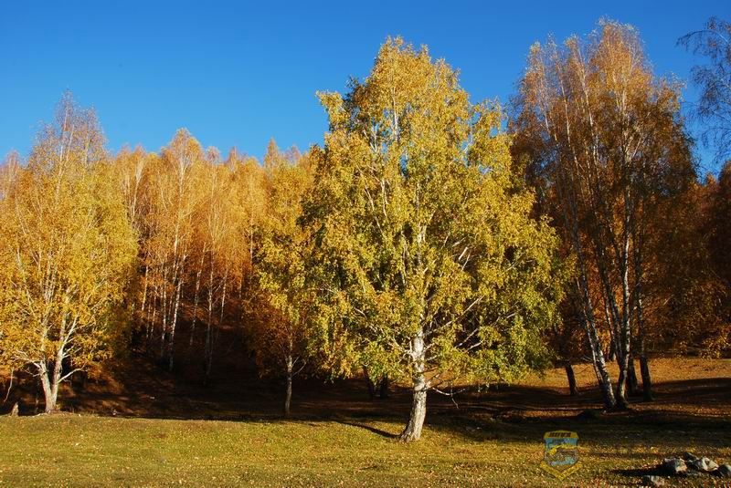 1 Y( `8 g7 j+ Z" u离开魔鬼城之后 我们沿着217国道北上直奔禾木 途经布尔津县城 沿途尽是金秋的景色 草儿黄了树也黄了