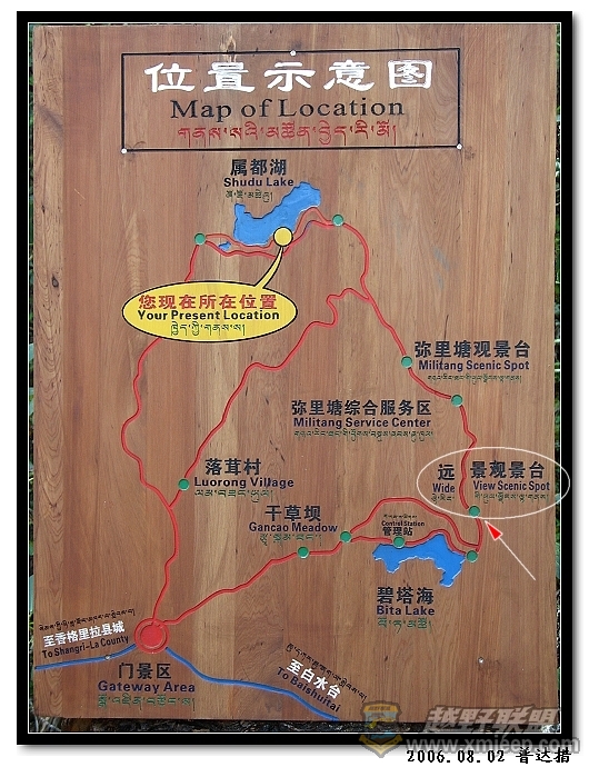此刻我们在红色箭头白色圆框的位置上。看落茸奶场