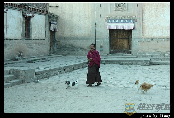 在几个殿堂间穿梭中.我们参观到了塔尔寺三绝中的壁画,酥油花和堆绣.据说.堆绣这种手艺已经失传了,全国剩余的20幅全部就在我们眼前这大殿中.大家唏嘘不已.而在酥油花馆.大家更是看得兴致勃勃.这里的手艺太棒了,比拉卜楞的精致得多,复杂的多!2006年7月的那期中国国家地理就有一篇专门介绍这塔尔寺和三绝的文章.没想到,现在反而成为我的复习和回味材料了.4 a( Q* Z. Y2 m9 N! y7 O1 n" I