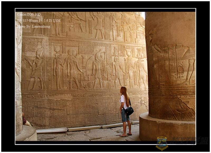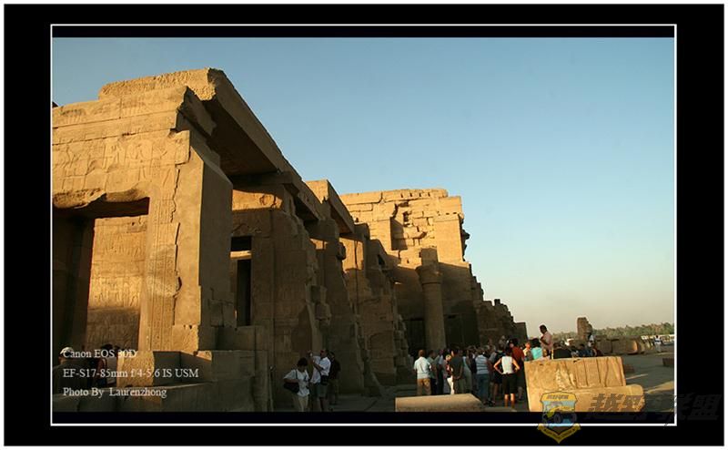 这是埃及现存唯一的双神庙,也就是一个庙有两个门并肩排着的造型。& i) r. r. c& Q- t, h