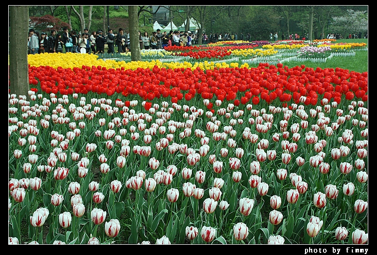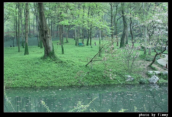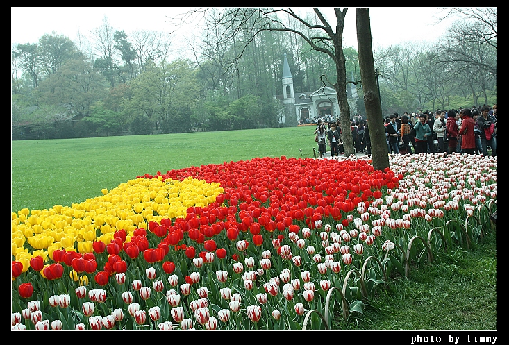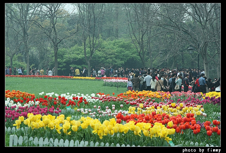 很难想象这么多人,而后面的树外就是马路了。马路对面是苏堤和西湖。
