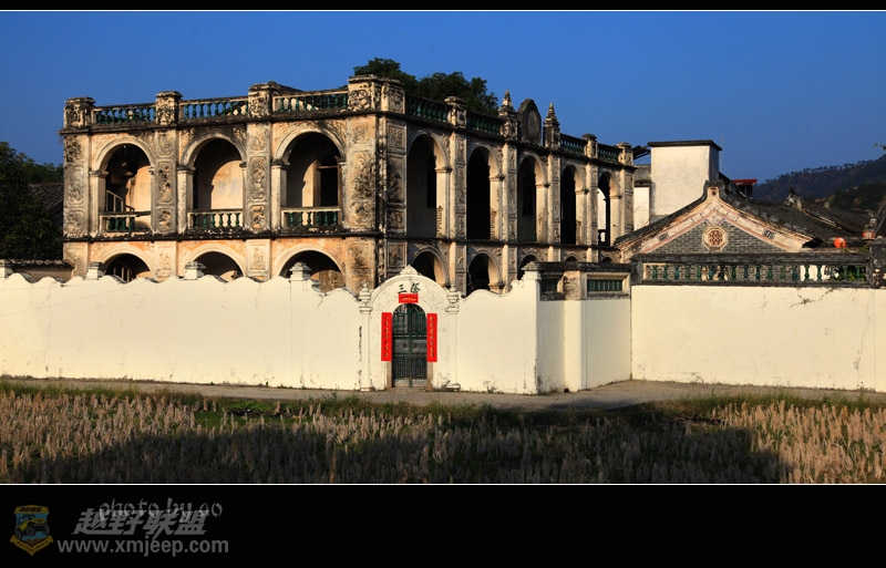 2 E8 G6 R/ w- W; h, k) \育豪新联丘氏围屋,依山坡而建,这样的围屋被称为围龙屋,在梅州境,不少围屋都是背依山坡,面临池水,感觉广东人更讲究风水些。