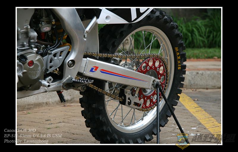 他还换上了红色齿轮,英国的 Red Renthal sproket 带有0字形的金色链条。
