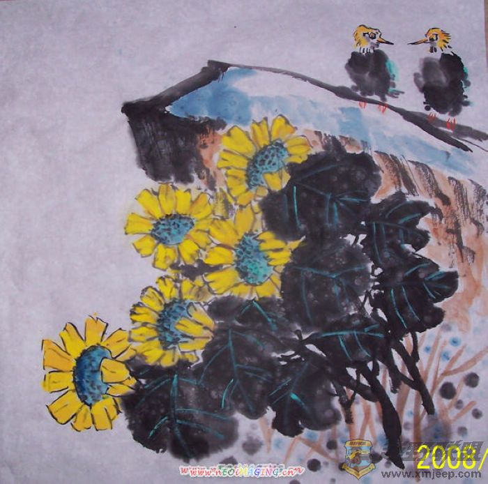 只是提一条小建议,国画乃文人画,当以淡雅为主,否则会感觉有些艳俗,即使重彩,色彩亦不宜过多.