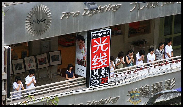 人们都站在走廊为灾区的人民祈祷。。。。。。