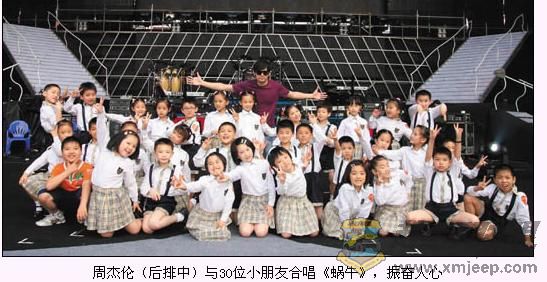 周杰伦个人捐款金额增加到150万人民币,昨天(5月24日)开唱前,富邦文教基金会也响应周董号召,隔海捐款100万人民币,主办方则接获20多家以上企业捐款,周杰伦弹钢琴与巴蜀小学30位学生合唱《蜗牛》,祝福灾区居民尽快走向新生,台下气氛凝聚合一,演出中大屏幕方文山(blog)以鼓励人心的字句,激励全场心里有爱,为灾民而唱。周董的号召力的确很大,记者粗略估算了一下,内外场的观众人数不下3万人。