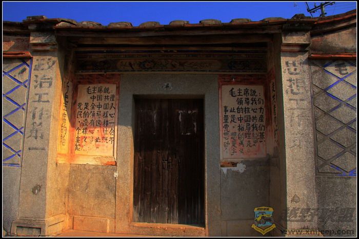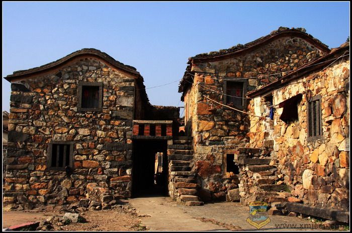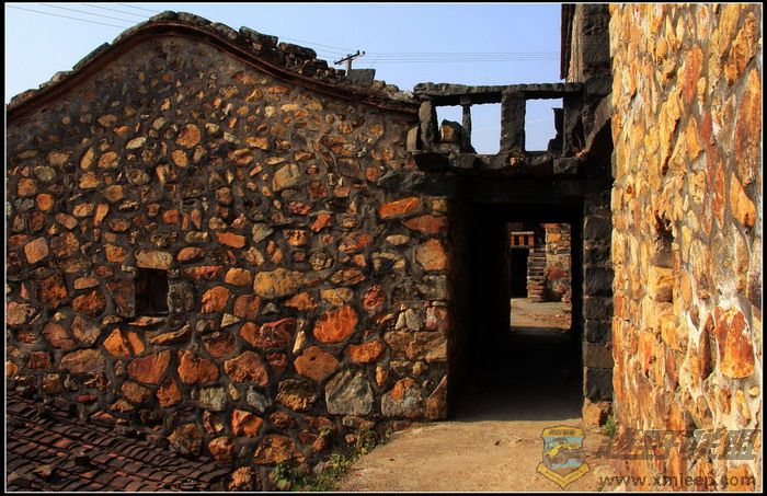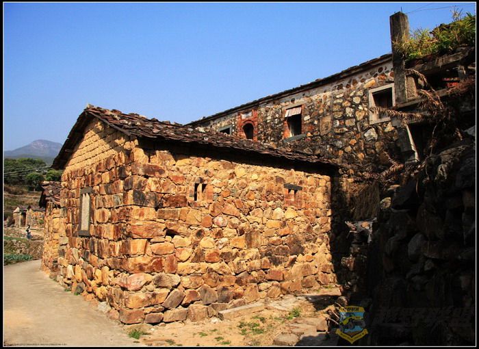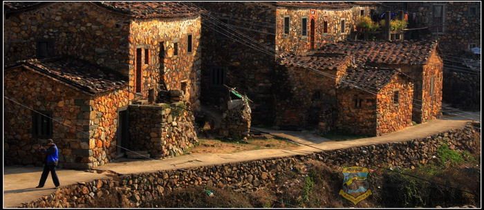 村里非常安静,是那种乡村特有的安逸宁静。沿着村中小道漫步,随处可见宽宽窄窄、纵横交错的小巷和高低错落的石阶,小巷古朴幽静,石阶延伸处与一座座民居相连,引人入胜的是这里的小巷、石阶和民居均是用规则不一、形状不同、五颜六色的山石砌成,一座座石屋,饱经沧桑,已显得斑驳殘破,但仍然默默的沉静在这里,似乎向人们展示着它所承载的历史。有意味的是,小道边一座古宅,曾被用白灰涂抹过,尤其醒目,门庭的两侧书写着两条**语录,记载了那个特殊年代的印记。村子不大,没有那些著名的古建筑群的壮观,也没有传说中的如油画般神奇的美丽,但那色彩斑斓、灼灼夺目的古石屋古色古香,也堪称一绝。