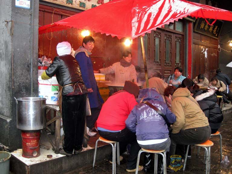 西安与扬州、成都一样,小吃是很有名的。搞定住宿后,迫不及待吃小吃去。锦江之星附近有条东新街,也是以小吃为主。走路几分钟就到,街两边一溜儿的门店都是烤肉啊,小龙虾啊,火锅啊什么的,出门在外本就虚火旺,又兼是干燥的西北,吃这些肯定要上火的。于是,挑了家西北风味的面馆,吃了一大碗红彤彤的歧山臊子面,但并不很辣。感觉西安的口味是微至中辣,不似川渝那个辣的哟。这家面馆和东新街一样,卫生乏善可陈,不知他们为什么不把进餐环境搞好一些,好环境起码能增加顾客食欲也提高自己的收入嘛。